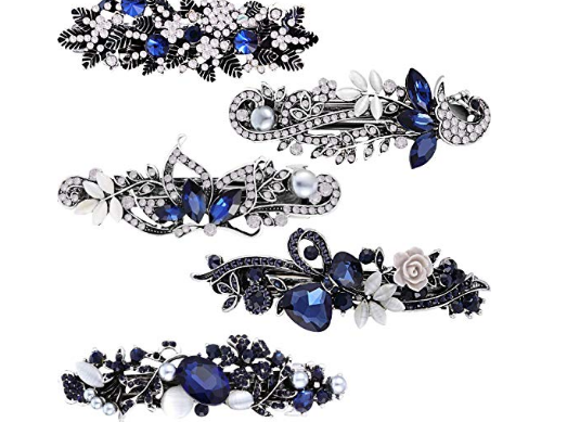 these vintage hair barrettes are made of rhinestone, faux crystal and metal alloy, durable and shining; Vintage style with navy blue crystal design make them exquisite and attractive, flower and butterfly shape add charm to your hairstyle